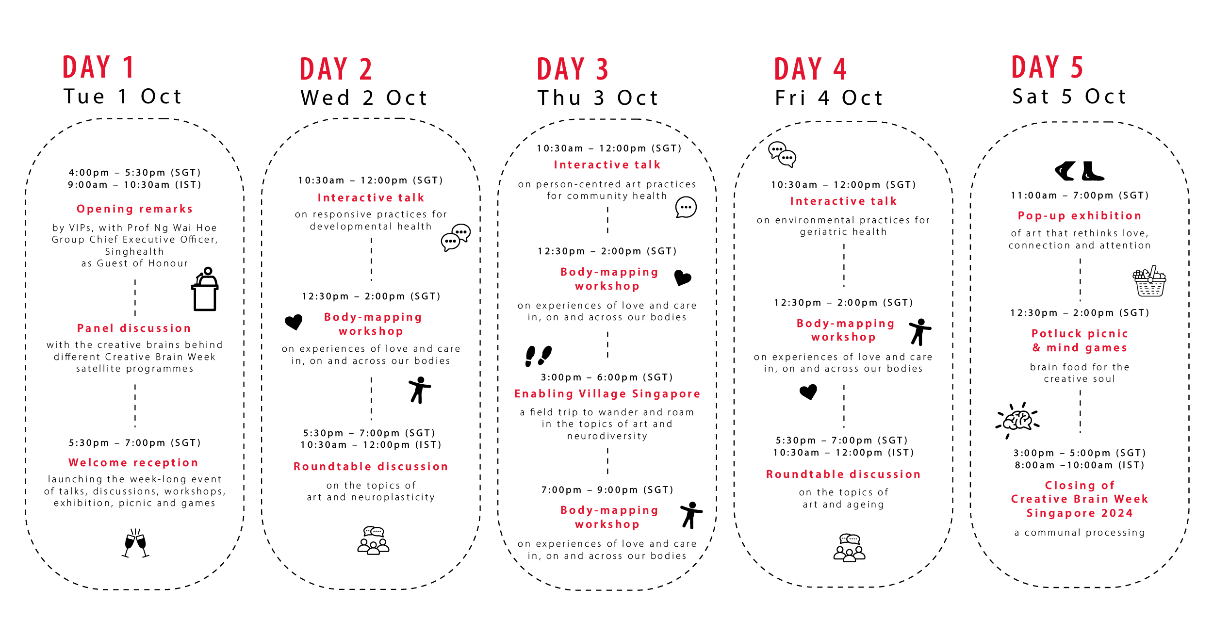 This pioneering week of events leverages embodied and experiential exchanges that synthesise neuroscientific and artistic knowledge to explore and extend the Creative Brain Week 2024 themes of attention, connection, and love in the context of brain health and health equity in Southeast Asia.